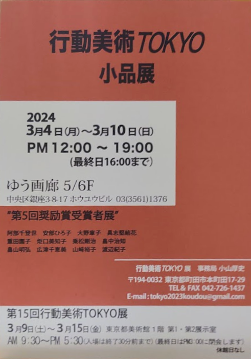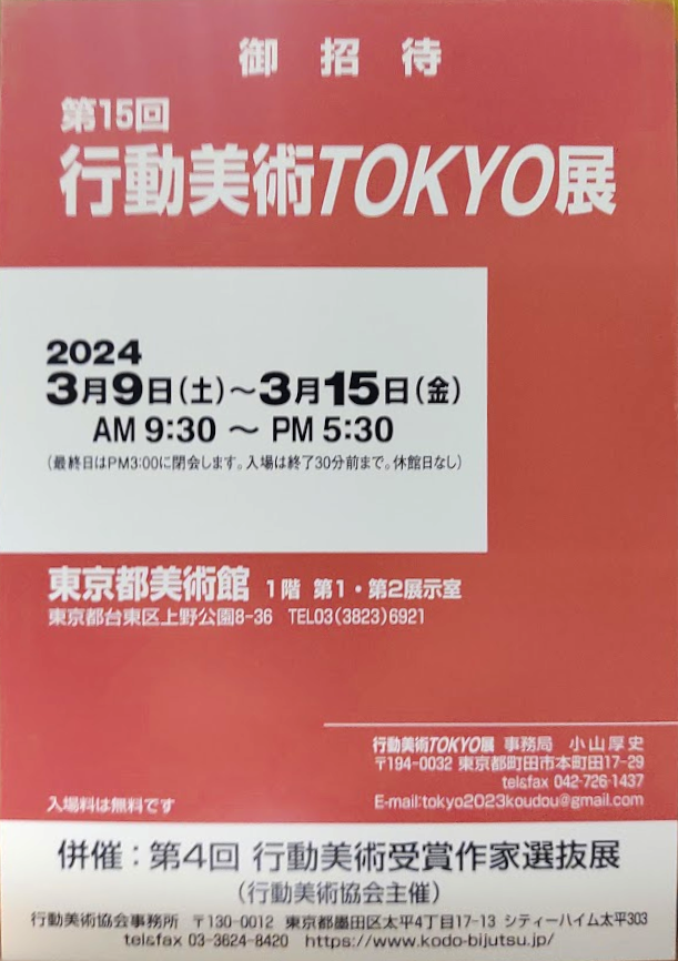 15回 行動美術TOKYOは、都美術館で3月9日から15日まで。